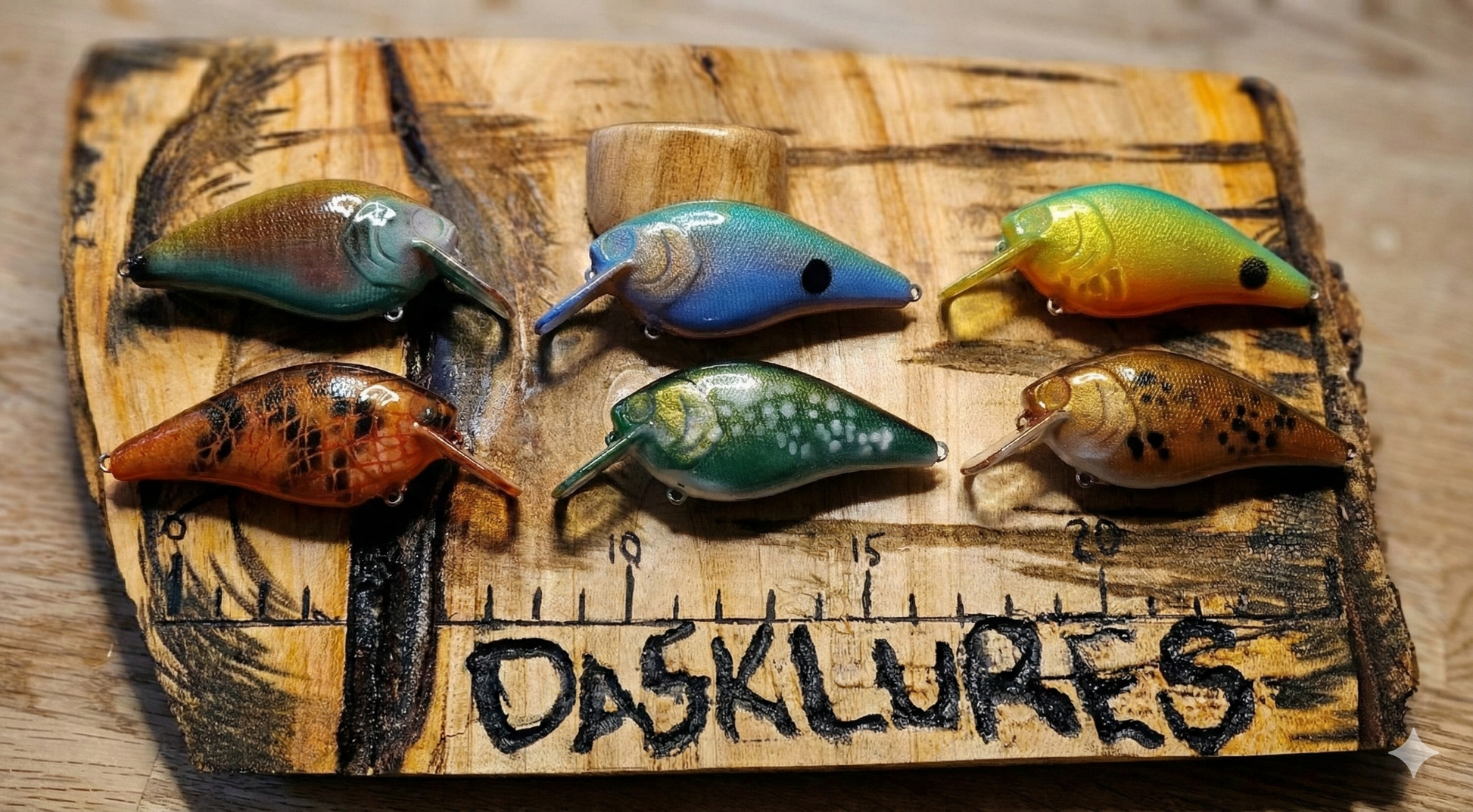 Ett crankbait i plast målat i oilka customfärger.