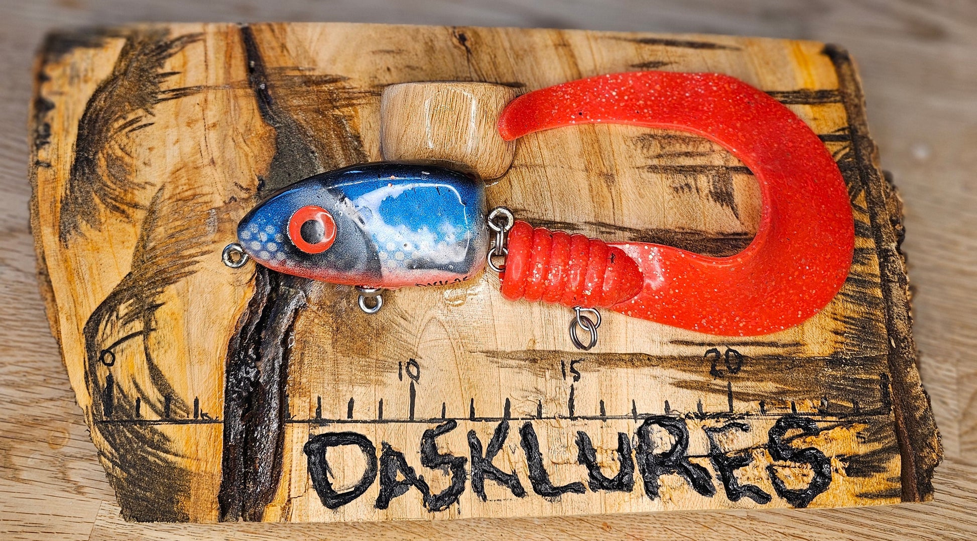 Ett handgjort tailbait i uppländsk ek. Vaggar fint vid låga farter och svansen pulserar som den ska